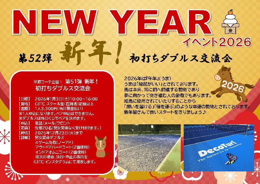 12/27(土) 【クリスマス交流会】早野コーチ企画ダブルス練習会!!