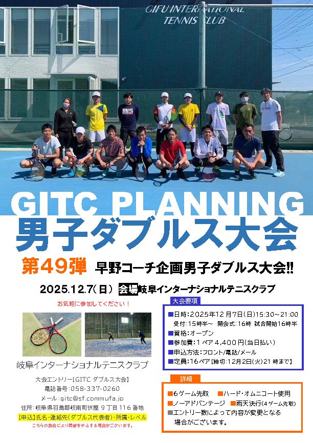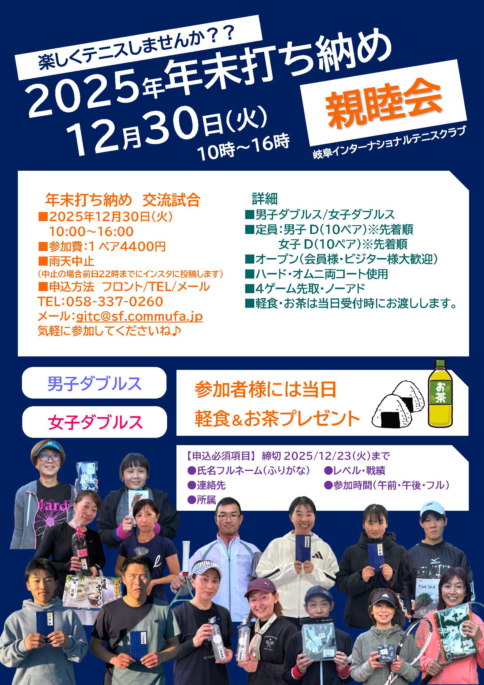 12/27(土) 【クリスマス交流会】早野コーチ企画ダブルス練習会!!