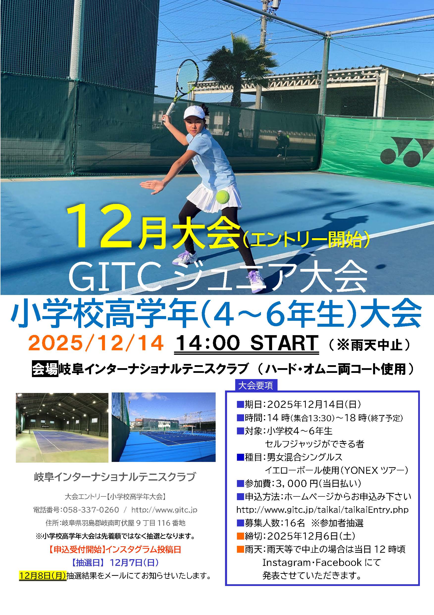 12/14(日)ジュニア大会 小学校高学年(4~6年生)大会» 大会参加のお申込みはこちらから